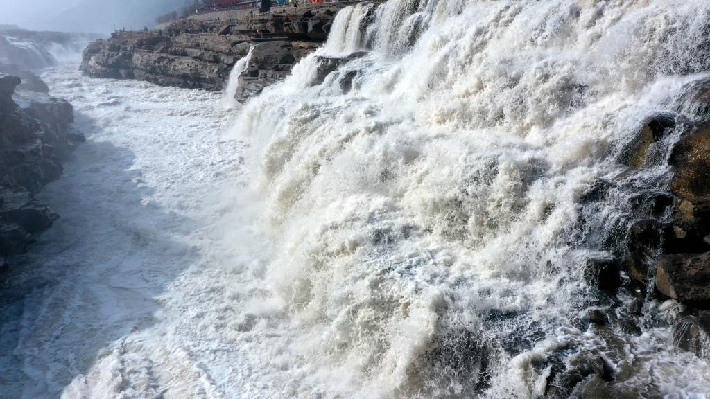 無(wú)人機(jī)航拍壺口瀑布 驚濤拍岸場(chǎng)面壯觀