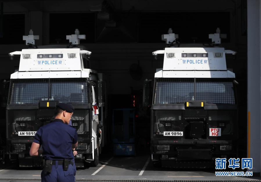 在香港警務(wù)處警察機(jī)動部隊總部,警車待命(2月4日攝)。新華社記者 李鋼 攝