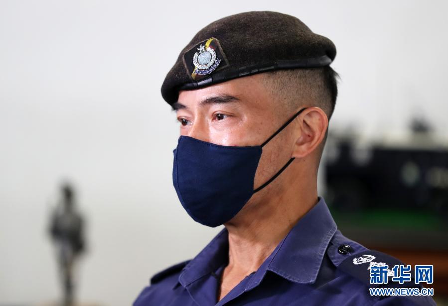 香港警務(wù)處警察機(jī)動部隊總部校長陳健國接受采訪(2月4日攝)。新華社記者 李鋼 攝