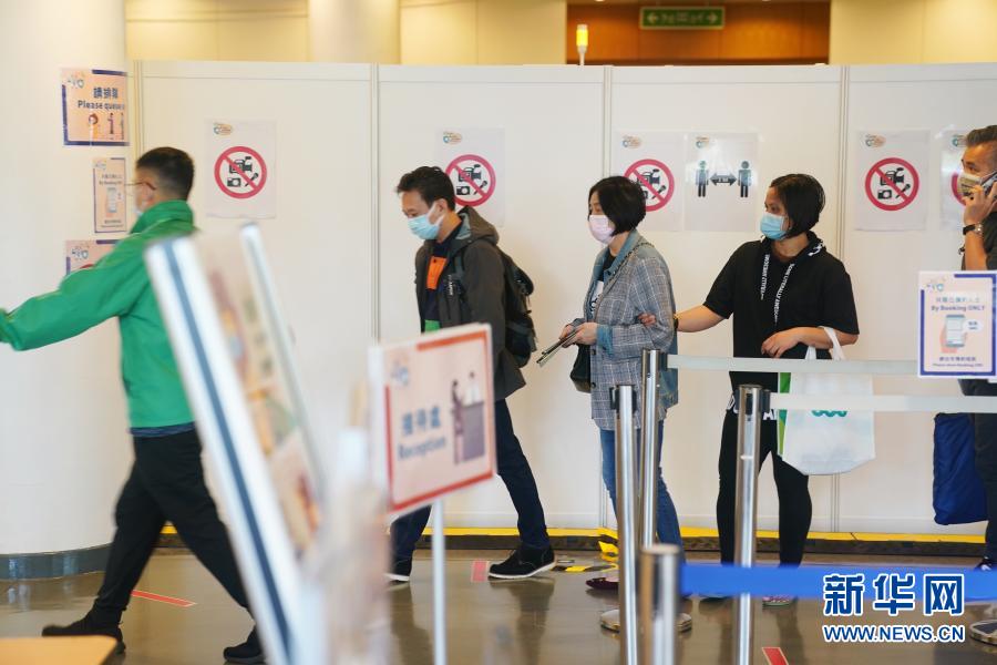 2月26日,在位于香港中央圖書館的社區(qū)疫苗接種中心,市民在入口處排隊。新華社記者 王申 攝