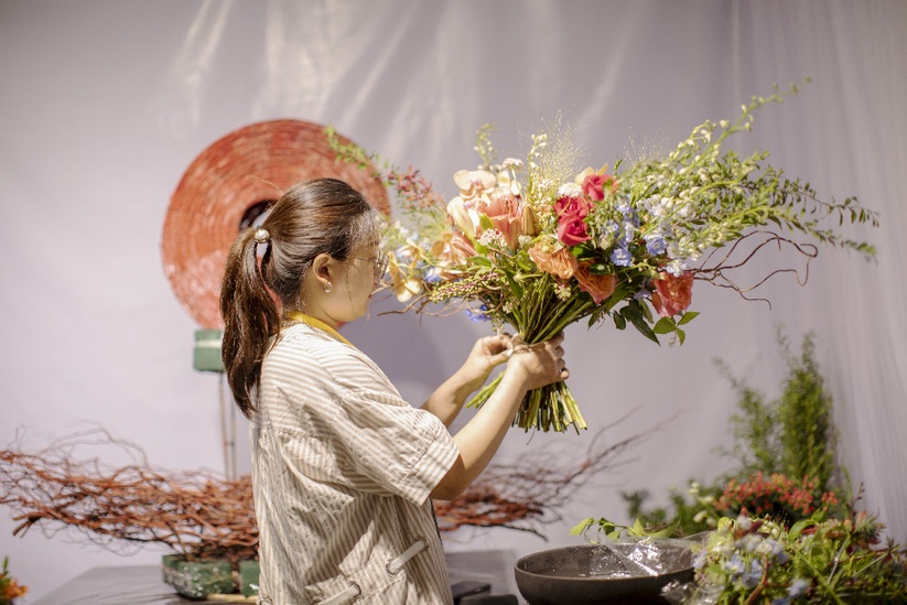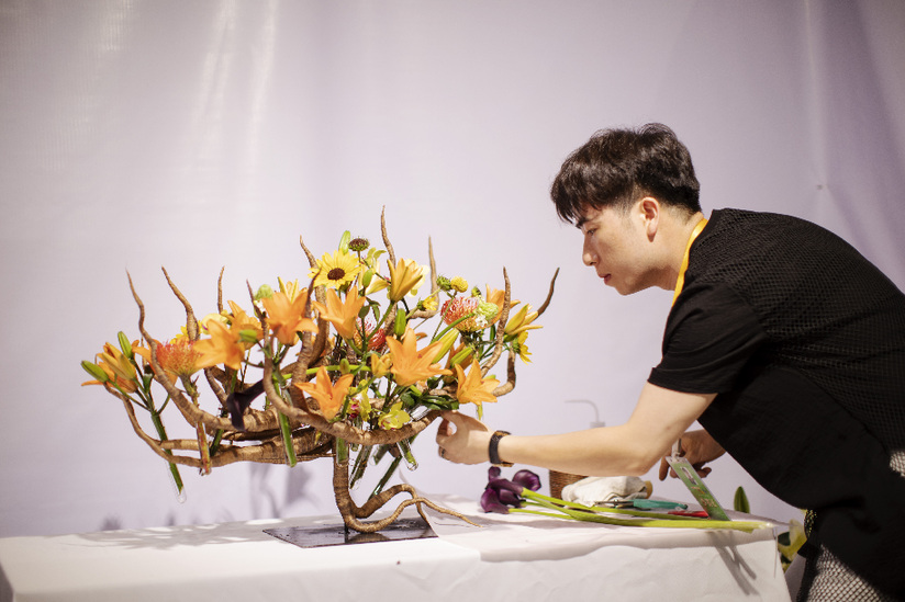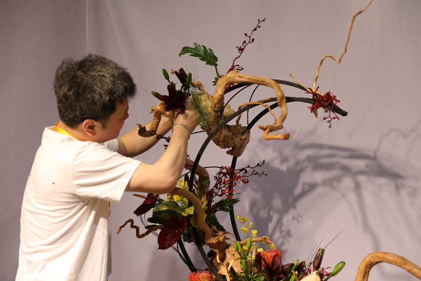 “輕攏慢捻抹復(fù)挑,插花也如琵琶語?!庇浾咴诂F(xiàn)場看到,選手們沉浸在插花藝術(shù)創(chuàng)作中,鮮花、枝葉在他們的手中經(jīng)過一番規(guī)整修剪,又如繪畫般慎重落下一抹畫筆,嬌艷綻放的鮮花在新的布局下,逐漸呈現(xiàn)出定格的自然之美、線條之美與意境之美,花藝設(shè)計本身的創(chuàng)作過程,就是一場賞心悅目的藝術(shù)呈現(xiàn),人和花交流的過程,也會讓人們更加能夠體會到生命的真實與絢爛。