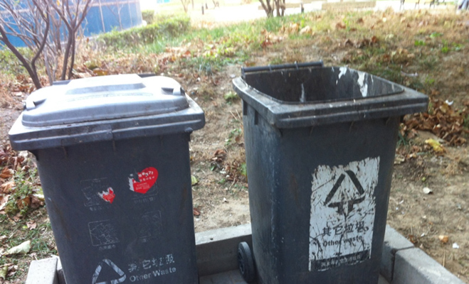 除了幾棵大樹(shù)之外,小區(qū)基本上沒(méi)有綠化,以前貌似種過(guò)綠草的地方,如今枯黃一片。垃圾桶早就已經(jīng)破舊不堪,在殘留的文字上,依稀可見(jiàn)當(dāng)時(shí)也曾嘗試過(guò)的垃圾分類(lèi)。小區(qū)內(nèi)沒(méi)有兒童休息場(chǎng)所、也沒(méi)有健身器材,只是設(shè)有幾個(gè)孤零零的座椅。
