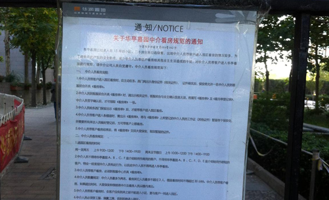根據(jù)記者觀察,工作人員嚴(yán)格執(zhí)行了來客登記制度,來客要在登記簿上清楚注明所需拜訪的業(yè)主家庭以及聯(lián)系電話,或者由業(yè)主親自到門口的位置來向保安人員說明情況,否則一律不予放行。除此之外,物業(yè)管理部門對中介公司工作人員到小區(qū)看房也做了極為嚴(yán)格、細(xì)致的要求,通知也被放到了門口的醒目位置。