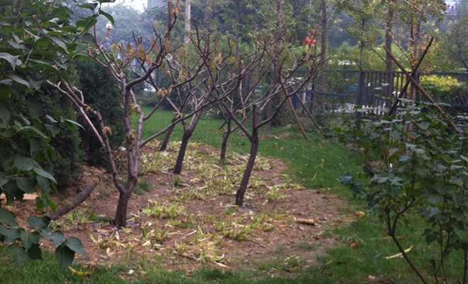 另外記者還發(fā)現(xiàn)在小區(qū)內(nèi)有多個(gè)區(qū)域的綠植出現(xiàn)了枯死,在簇簇濃綠之中格外扎眼。據(jù)社區(qū)內(nèi)的一位業(yè)主介紹,這種情況每年都會(huì)出現(xiàn)(該項(xiàng)目入駐時(shí)間為2008年)。就在調(diào)查期間,一棟樓的門口位置圍著幾名身著物業(yè)人員。原來(lái),這里的地板磚出現(xiàn)了斷裂、拱起,需要對(duì)其進(jìn)行切割、整修。記者還在花壇兩側(cè)、雕像周圍發(fā)現(xiàn)了裂縫。