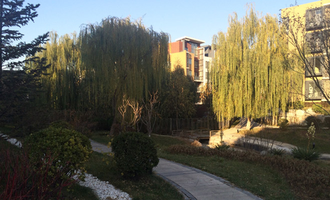 在首開常青藤內(nèi)部,記者看到不少業(yè)主在小區(qū)里散步。小區(qū)內(nèi)景觀園林依地勢(shì)而建,庭院、水景、花草高低錯(cuò)落有致,植被茂盛。談到小區(qū)的環(huán)境,業(yè)主表示很滿意。小區(qū)內(nèi)部還建有水景,不過由于時(shí)值冬天,記者并沒有看見水流。