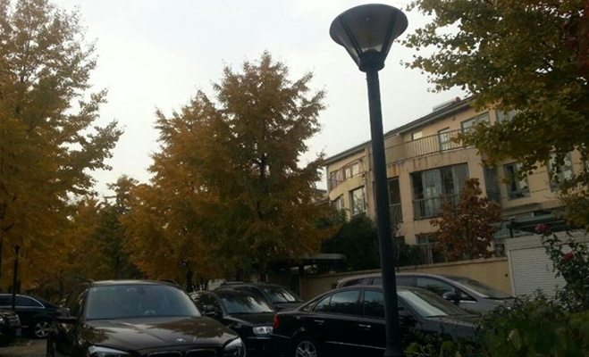 恩濟里小區(qū)內無地下停車場,一部分車輛??吭谥贫ㄎ恢茫ǖ孛鏄擞熊嚺铺枺┝硪徊糠謩t直接??吭诼愤?,擠占了部分消防通道的位置。而且在西門電子通知牌附近以及六一小學門口(小學在社區(qū)之內)綠植由于長時間無人打理已經(jīng)顯得十分雜亂,其中還充斥著雜草。