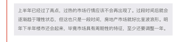 對(duì)于下半年樓市走勢(shì),畢興礦認(rèn)為,下半年肯定沒(méi)有上半年這么好...
