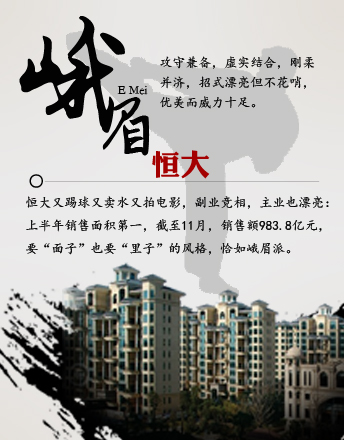 恒大 峨眉派 峨眉派攻守兼?zhèn)?,虛?shí)結(jié)合,剛?cè)岵?jì),招式漂亮但不花哨。 恒大既搞副業(yè),又攻主業(yè),樣樣風(fēng)生水起。年度銷售額新入圍千億俱樂部。要面子也要里子的風(fēng)格,恰如峨眉派。