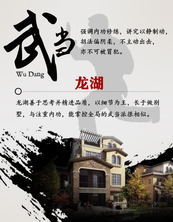 龍湖 武當(dāng)派 武當(dāng)強(qiáng)調(diào)內(nèi)功修練,以靜制動(dòng),一般不主動(dòng)進(jìn)攻,但亦不可輕易侵犯。 龍湖出手拿地都經(jīng)深思,經(jīng)營風(fēng)格沉穩(wěn)凌厲,重細(xì)節(jié)品質(zhì)。與注重內(nèi)功,看似被動(dòng)實(shí)能縱觀全局的武當(dāng)派很像。