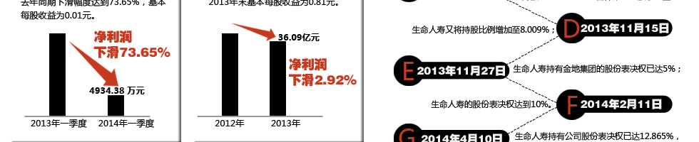 險資“咄咄逼人” 股權之爭何時了? 根據(jù)金融街一季報顯示,除了第一大股東北京金融街集團為國有法人外,十大股東中的其他均是機構投資者:4家保險、3家信托和2家基金重倉。 4月底和諧健康險舉牌后,安邦系已經(jīng)成為第二大股東。加上舉牌后的和諧健康險,其余九大股東總共持倉為13.45%。其中,安邦保險子公司和諧健康險一季度持股金融街5162.6萬股,占比1.71%,位列第三大股東。 5月6日,金融街控股股東金融街集團及其一致行動人增持了公司股份55,000,000股,占公司股份總數(shù)的1.82%。增持后,大股東合計持有金融街股份總數(shù)的29.74%,逼近30%的收購邀約線。 |