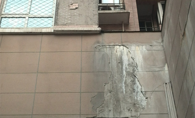 建筑質(zhì)量問(wèn)題是國(guó)瑞城回遷房業(yè)主們普遍抱怨的另一個(gè)重要問(wèn)題。業(yè)主們說(shuō),有些樓棟存在墻體裂縫、墻皮脫落的情況,并有數(shù)次墻皮脫落時(shí)差點(diǎn)砸傷業(yè)主的情況。