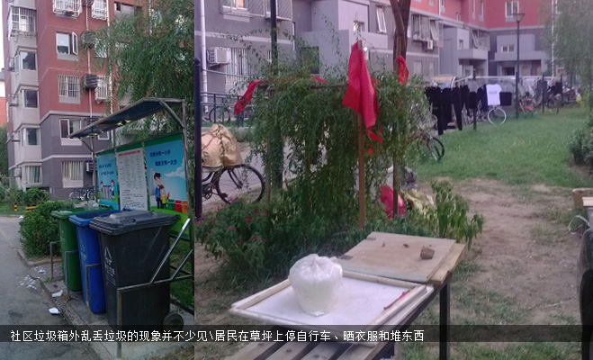 美和園的各個方向有多個進出口,小區(qū)安保方面管理較松,記者很輕松就在社區(qū)中間穿行,一路發(fā)現(xiàn)路邊偶有垃圾,車道上停車并不很規(guī)范,而社區(qū)樓棟間的草坪上也出現(xiàn)亂曬衣物和亂堆東西的現(xiàn)象。據(jù)小區(qū)內(nèi)的業(yè)主爆料,美和園發(fā)生盜竊事件的頻率略高,大到停在社區(qū)樓下的電動車,小到家里的小東西,一般夜間小偷進來和出去都一樣方便,居民對記者表示無奈,“反映給物業(yè)也不管什么用”。