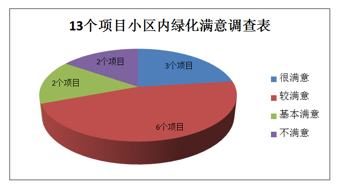 根據(jù)上表可以看出:調(diào)查問卷項(xiàng)目共13個(gè);其中,基本滿意與不滿意各占15%。很滿意占24%,比較滿意比例最高,占46%。