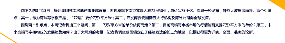 不過,一個市場現(xiàn)象是可喜的。據(jù)戴德梁行的數(shù)據(jù)統(tǒng)計(jì),2014年,南京高端寫字樓物業(yè)的供應(yīng)量將超過35萬平方米,主要集中于河西和南站區(qū)域,新街口和鼓樓核心區(qū)供應(yīng)量不足7萬平方米。