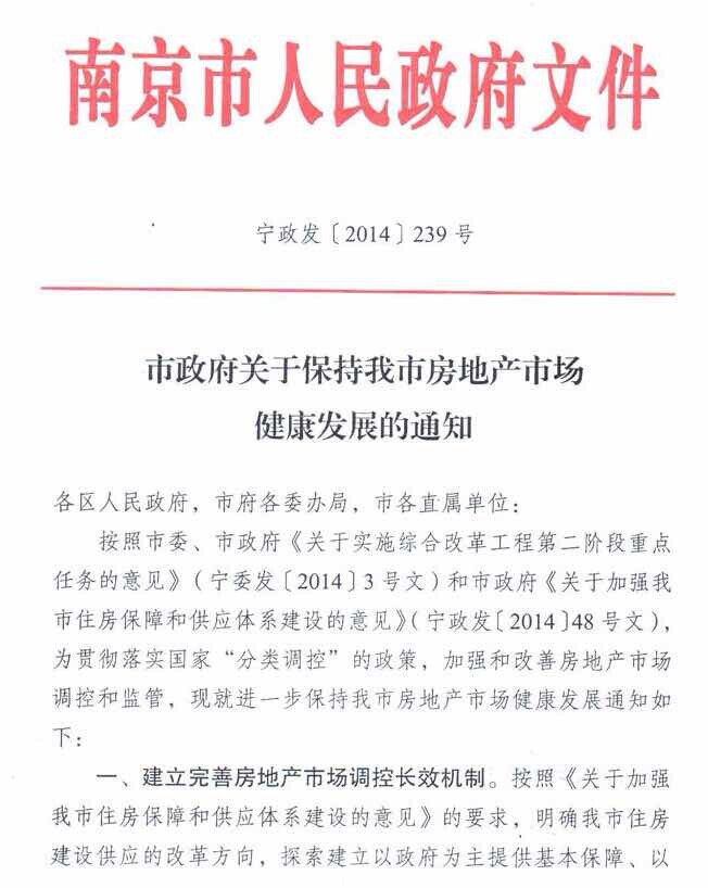 9月21日下午,南京市政府正式發(fā)文,明確全面取消住房限購,即日起購房不再需提供新購住房證明,持續(xù)三年零9個月的南京樓市“限購令”宣告退出歷史舞臺。據(jù)了解,2011年2月,“限購令”正式落地南京,為火熱的樓市澆了一盆冷水。但進入2012年之后,南京樓市逐漸回暖,2013年更是進入全面瘋狂。直至2014年以來,樓市開始疲軟,國家統(tǒng)計局數(shù)據(jù),南京房價6月、7月、8月連續(xù)下跌三個月,9月樓市庫存量更是重回5萬套大關(guān),解除限購的呼聲愈來愈高。據(jù)悉,南京解除限購令之后,全國目前只剩北京、上海、廣州、深圳、珠海、三亞6個城市仍執(zhí)行樓市限購政策。