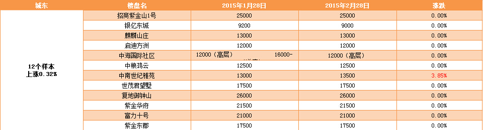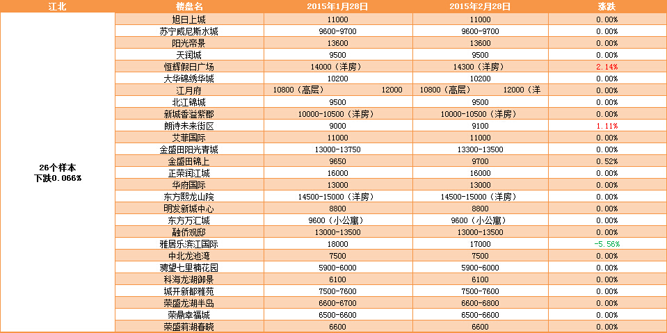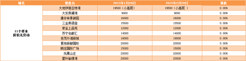 新華房產(chǎn)記者統(tǒng)計發(fā)現(xiàn),2015年2月南京樓市八大板塊中,江寧、河西、城東房價上漲,江北房價下跌,其余板塊房價無變動。 綜合結(jié)果,2月房價環(huán)比微漲0.12%。 [詳細(xì)]