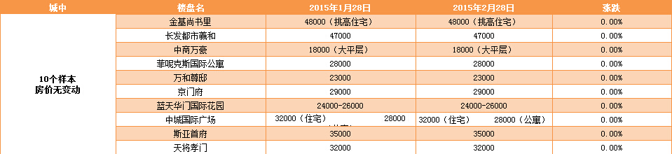 國家統(tǒng)計局發(fā)布《2015年1月份70個大中城市住宅銷售價格變動情況》。發(fā)布的數(shù)據(jù)顯示,1月份70個大中城市新建商品住宅價格環(huán)比下降的城市有64個,比上月減少2個;持平和上漲的城市分別有4個和2個,均比上月增加1個。其中,南京新建住宅價格環(huán)比持平?!?/span>…[詳細(xì)]