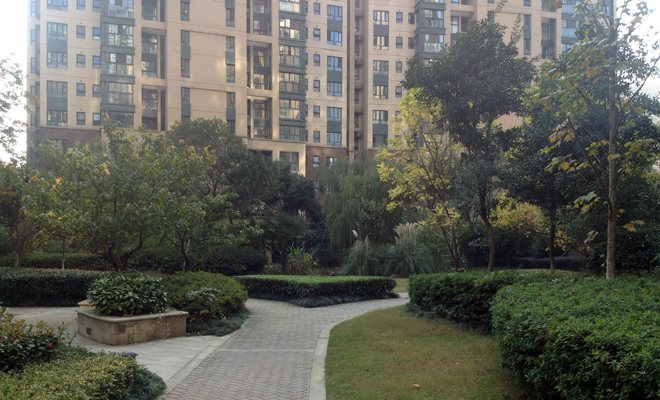 新華房產(chǎn)記者進(jìn)入小區(qū)的第一感覺(jué)就是環(huán)境非常好。樓棟之間、道路兩旁到處都是綠樹(shù)成蔭,各種類(lèi)型的花草樹(shù)木修剪的井井有條,走在里面如同置身林間小道,居住環(huán)境十分怡人。