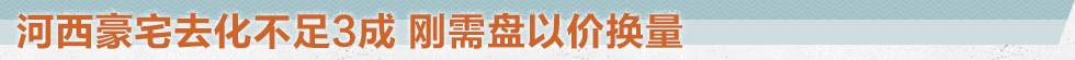 房價飛漲的河西板塊現(xiàn)在終于冷靜了。買不到的“神盤”——海峽城現(xiàn)如今讓購房者有了挑選的余地;純新盤五礦崇文金城即便以低于預(yù)期1500元/平方米的價格入市,去化也僅有8成;豪宅代表華潤悅府門前更是冷清,開盤一個半月去化不足3成。
