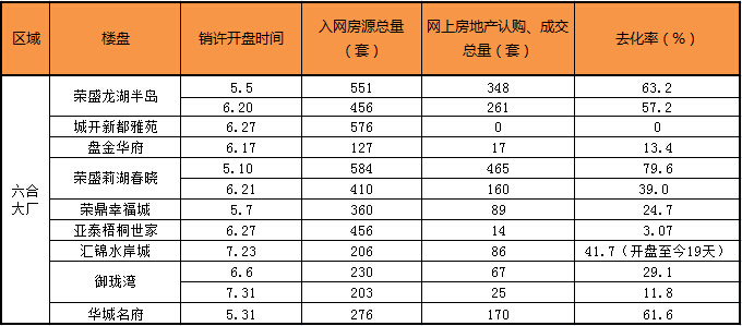 根據(jù)網(wǎng)上房地產(chǎn)的統(tǒng)計數(shù)據(jù)顯示,六合片區(qū)內(nèi)樓盤的實際銷量呈現(xiàn)出了兩極分化狀,當(dāng)?shù)亍褒堫^”企業(yè)榮盛旗下各盤依舊不愁賣,但除此之外,約計八成情況不容樂觀,超過一個月的累計去化率不足四成。更有一盤,6月底領(lǐng)到的預(yù)售房源,至今無一套房源進(jìn)賬。