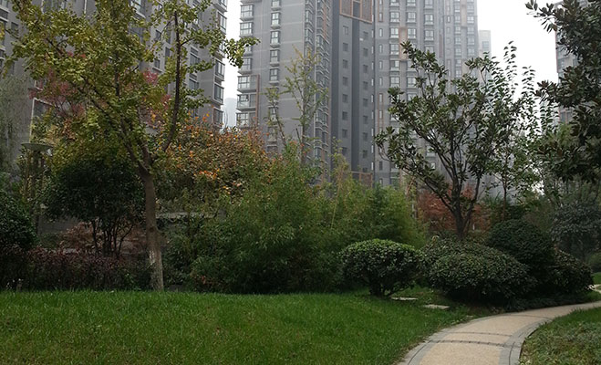 記者本次的調(diào)查主要在一期進行,一期的綠化做的非常好,草坪、花壇、綠樹環(huán)繞著幾棟住宅樓,綠樹成蔭、花草成片,各種造型的綠植處處可見,整個小區(qū)顯得郁郁蔥蔥、生機勃勃。記者在小區(qū)轉(zhuǎn)了一圈后發(fā)現(xiàn),整個小區(qū)并不是很大,樓宇之間穿插著幾個小廣場,分別配有幼兒及成人活動器材,有幾個媽媽帶著小寶寶在玩蹺蹺板。中午時分,旁邊不遠處的社區(qū)內(nèi)部幼兒園靜悄悄的,應(yīng)該是孩子們在午休。