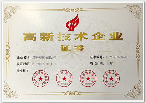 新華網(wǎng)獲頒國(guó)家高新技術(shù)企業(yè)證書(shū),成為首家獲得高新技術(shù)企業(yè)認(rèn)定的中央重點(diǎn)新聞網(wǎng)站。