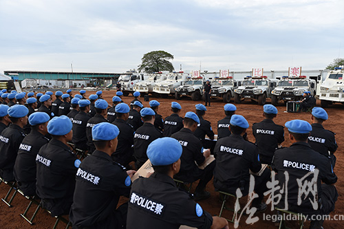 圖為中國(guó)第四支駐利比里亞維和警察防暴隊(duì)隊(duì)員在認(rèn)真聆聽隊(duì)友演講