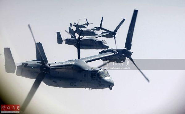 資料圖:V-22“魚(yú)鷹”旋翼機(jī)編隊(duì)。