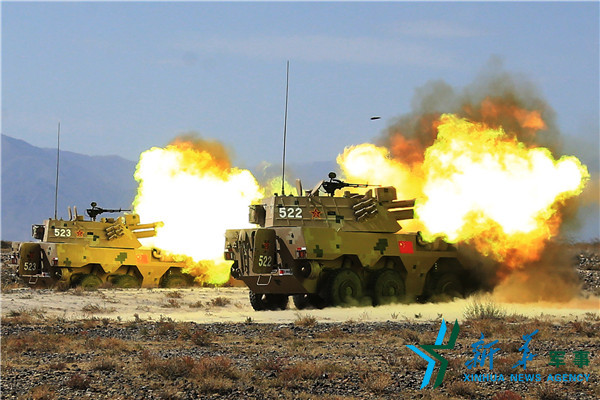 ??? 在吉爾吉斯斯坦巴雷克奇舉行的“和平使命—2016”上海合作組織聯(lián)合反恐軍事演習(xí)第三次實兵實彈合練中,中方自行火炮進(jìn)行實彈射擊(9月19日攝)。新華社發(fā)(王寧 攝)