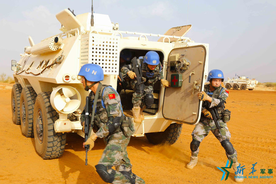 2014年10月20日,中國第二批赴馬里維和警衛(wèi)分隊實施行進(jìn)間處突演練——范存印攝