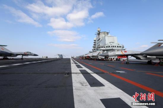 中國(guó)海軍航母編隊(duì)在南海組織艦載機(jī)起降訓(xùn)練