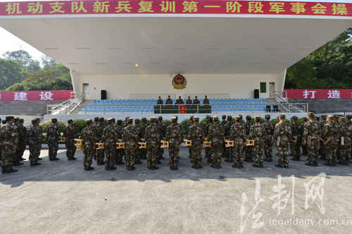 圖為機(jī)動(dòng)支隊(duì)新兵復(fù)訓(xùn)第一階段軍事會(huì)操前隊(duì)伍集結(jié),做動(dòng)員講話
