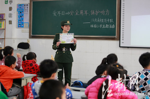 ????在第18個全國“愛耳日”即將來臨之際,3月1日,廣東公安邊防總隊六支隊“沙頭角模范中隊”與深圳市鹽田區(qū)林園小學共同開展“安全用耳 保護聽力”主題活動。