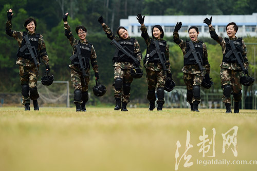 ????“干媽,我太想你了!”“隊長,我要給你個擁抱!”“我也要來個熊抱!”在深圳銀湖山下的邊防警營,記者現(xiàn)場看到,陳偉紅所到之處皆有掌聲,戰(zhàn)士們熱情的上前打招呼、話家常、送祝福。特別是在訓練場,一支六人組成的“霸王花”小分隊格外搶眼,手握九五式鋼槍,腳穿新式防爆靴,個個全副武裝、英姿颯爽,走起路來虎虎生風;細一掂量,僅身上的防彈背心、頭盔、鋼槍就有三十多斤重,均為目前的先進裝備。看到陳隊長到來,霸王花們又變成了小姑娘,紛紛涌向老大姐,拉家常、話思念?!拔覀兌际谴蠼愕耐降?!”女中尉小劉說。作戰(zhàn)訓練科賴紹坤科長介紹,該支隊作為全國公安邊防部隊的機動力量,常年擔負多項緝私、緝毒、救援、處突任務;而該支隊平日里,這些女干部主要分布在各機關業(yè)務科室,但是只要任務需要,她們都將奔赴第一現(xiàn)場;所以平時的訓練同樣嚴格;“女干部和男干部一樣,無論在哪個崗位,每個季度都會組織進行體能、技能考核!”(廖鍵)