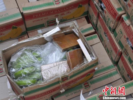 圖為香蕉中查獲的毒品。李悅 攝
