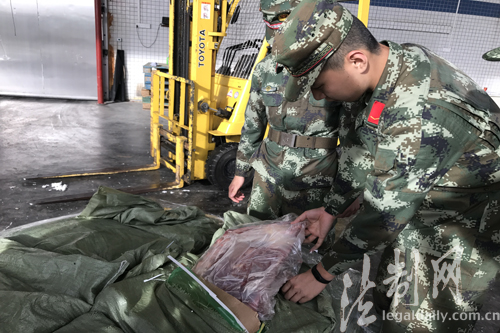 ????這次我們要為邊防官兵和執(zhí)法部門點贊,他們守護了我們舌尖上的安全!6月12日,在廣東省打私辦“春雷行動”統(tǒng)一部署下,東莞市打私辦、廣東邊防總隊東莞邊防支隊、東莞市檢驗檢疫局、中堂鎮(zhèn)政府等多部門聯(lián)合開展清查行動,成功在東莞中堂鎮(zhèn)一倉儲物流公司廠區(qū)內(nèi)查獲一批涉嫌非法走私凍品。