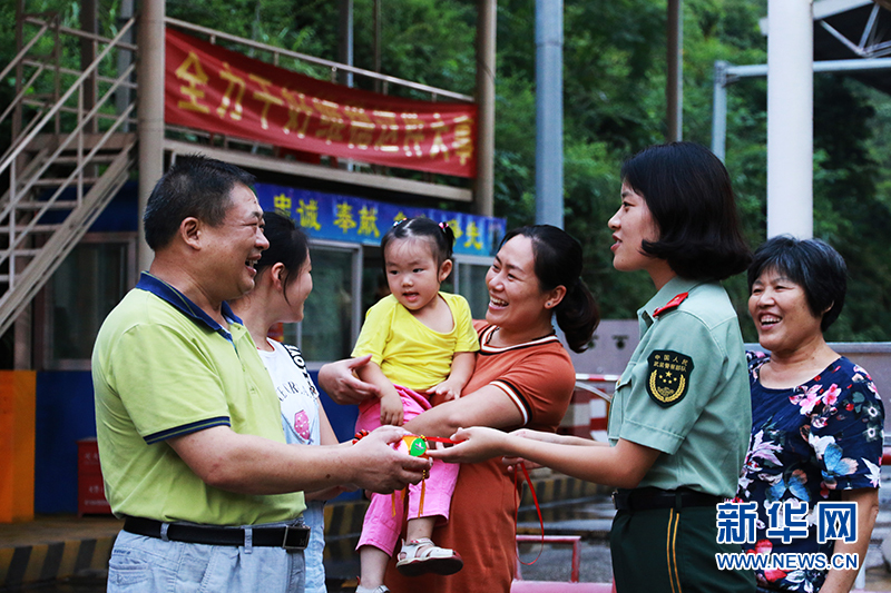 崇左邊防支隊官兵到憑祥邊境檢查站給過往人員送繡球。吳忠科 攝