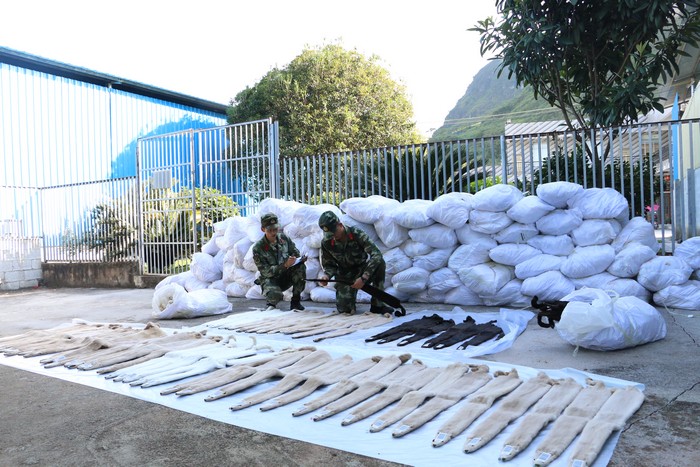 ????該支隊獲得情報后成立專案組,在轄區(qū)展開排查。其間,發(fā)現(xiàn)龍邦鎮(zhèn)一車輛裝載可疑涉私貨物,待其裝載完畢后,隨即追蹤該車。行駛中,該車從小路繞過邊防執(zhí)勤點和檢查站。歷經兩個多小時追蹤后,專案組截停該車,當場查獲無合法手續(xù)貂皮80多件5200多張。