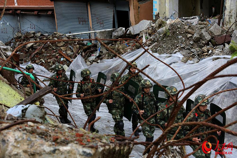 在巡邏中通過(guò)危險(xiǎn)路段。黃恩 攝