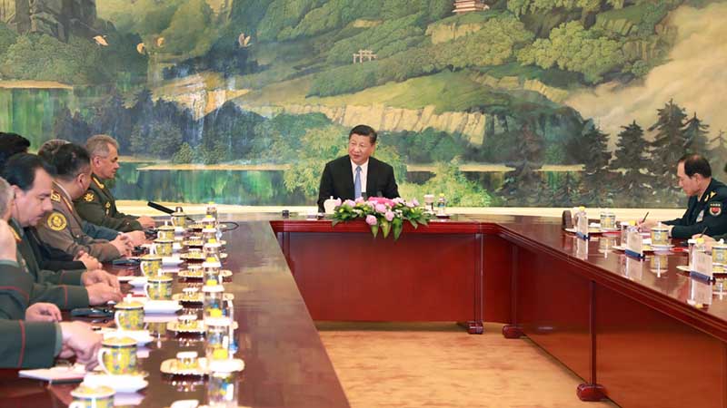 ????新華社北京4月23日電(記者梅世雄)國(guó)家主席習(xí)近平23日在人民大會(huì)堂集體會(huì)見(jiàn)上海合作組織成員國(guó)國(guó)防部長(zhǎng)。俄羅斯國(guó)防部長(zhǎng)紹伊古、哈薩克斯坦國(guó)防部長(zhǎng)扎蘇扎科夫、吉爾吉斯共和國(guó)武裝力量總參謀長(zhǎng)杜伊申比耶夫、巴基斯坦國(guó)防部長(zhǎng)達(dá)斯特吉爾·汗、塔吉克斯坦國(guó)防部長(zhǎng)米爾佐、烏茲別克斯坦國(guó)防部長(zhǎng)阿濟(jì)佐夫,上海合作組織副秘書長(zhǎng)索韋托維奇,上海合作組織地區(qū)反恐怖機(jī)構(gòu)執(zhí)行委員會(huì)副主任吉約索夫、印度駐華大使班浩然以及作為特邀嘉賓列席此次會(huì)議的白俄羅斯國(guó)防部長(zhǎng)拉夫科夫參加會(huì)見(jiàn)。
