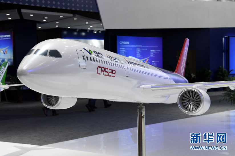 ??? 現(xiàn)場展示的CR929模型(11月7日攝)。 在第十二屆中國國際航空航天博覽會上,作為我國民用大飛機(jī)的研制主體,中國商用飛機(jī)有限責(zé)任公司展示了CR929遠(yuǎn)程寬體客機(jī)1:1樣機(jī),吸引了眾多觀眾參觀體驗。 新華社記者 梁旭 攝