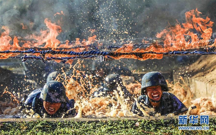 海軍陸戰(zhàn)隊某旅偵察營在三亞某訓練場開展極限體能訓練(11月21日攝)。新華社發(fā)(范旭東 攝)
