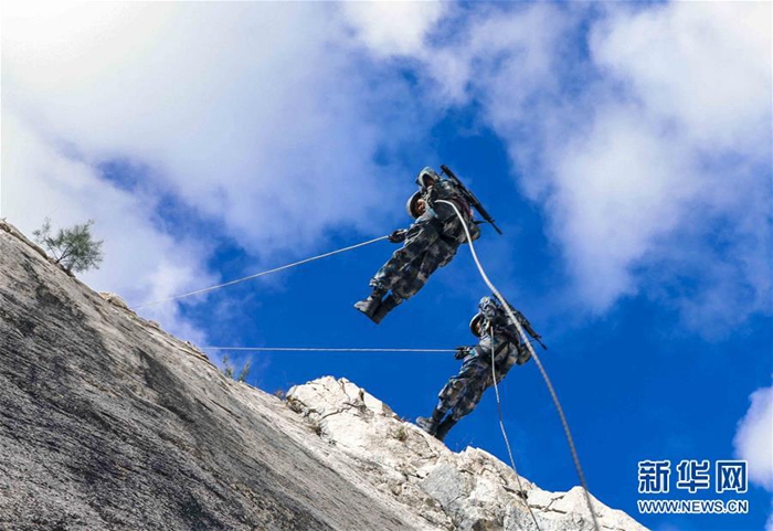 海軍陸戰(zhàn)隊某旅偵察營在三亞某地進行崖壁滑降訓練(11月20日攝)。新華社發(fā)(范旭東 攝)