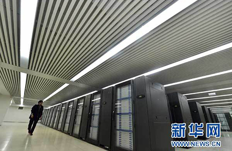 ????陽光和煦,在天津濱海新區(qū)的國家超級計算天津中心,一棟橘紅色大樓外墻上,“天河”兩個大字格外醒目。近千平方米的主機房內(nèi),由國防科技大學(xué)計算機學(xué)院研制的我國首臺千萬億次超級計算機系統(tǒng)——天河一號,排列成13行,猶如列隊受閱的方陣,正高速運轉(zhuǎn)。