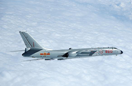????資料圖片:2017年11月23日,空軍轟-6K戰(zhàn)機前出第一島鏈開展遠洋訓(xùn)練。新華社發(fā)(王國松 攝)