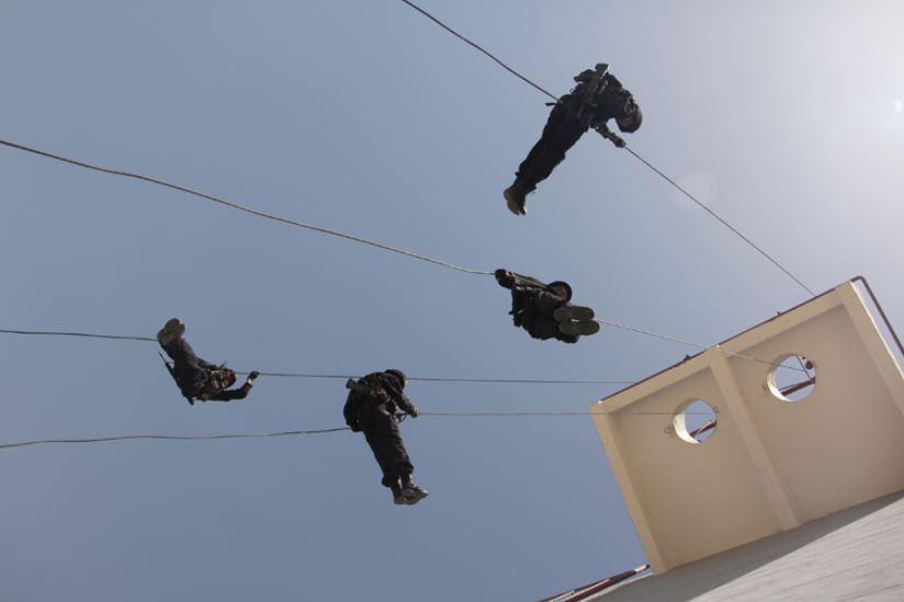 ????資料圖片:武警新疆總隊四支隊特勤中隊進(jìn)行樓房索降訓(xùn)練。新華社發(fā)(楊皓 攝)