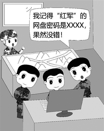 ????演練結束,這名文書坦言,他早就知道對方的網盤密碼。原來,此前,各營文書為了便于工作交流,有時會使用網盤傳輸或分享文件,一些網盤用戶名和密碼不少人都知道。這次演練前,“藍軍”營文書在用網盤調取查閱資料時,無意中在對方網盤中發(fā)現了秘密。