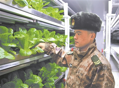????高原邊防連隊(duì)的“植物工廠”種出新鮮蔬菜。徐明遠(yuǎn) 攝
