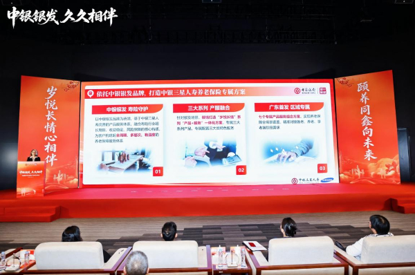 中银三星人寿深入贯彻落实积极应对人口老龄化国家战略,始终坚守“金融为民”初心使命,全面融入“中银银发”品牌生态,依托集团资源与专业优势,聚焦备老、养老、享老全生命周期需求,在会上重磅发布“岁悦长情”养老金融服务方案,以“产品+服务”一体化创新模式,用专业金融力量与暖心服务,为银发客群构建全周期、多层次、有温度的养老保障体系,以金融担当书写养老事业高质量发展新篇章。