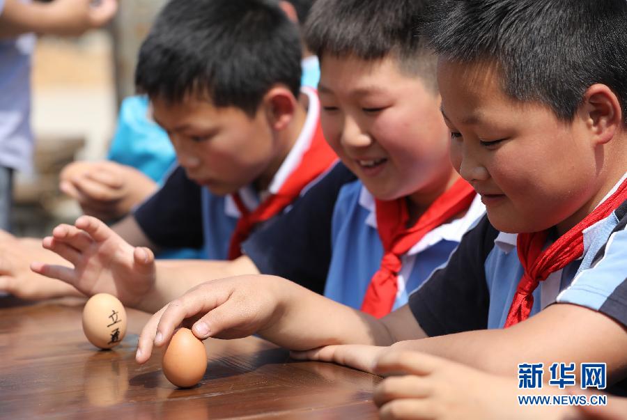5月5日,在浙江杭州臨安區(qū)天目山鎮(zhèn)武山村,幾名小學(xué)生在體驗(yàn)“立蛋”的傳統(tǒng)習(xí)俗。立夏節(jié)氣將至,人們參加繪彩蛋、稱體重等活動(dòng),體驗(yàn)傳統(tǒng)民俗。新華社發(fā)(胡劍歡 攝)